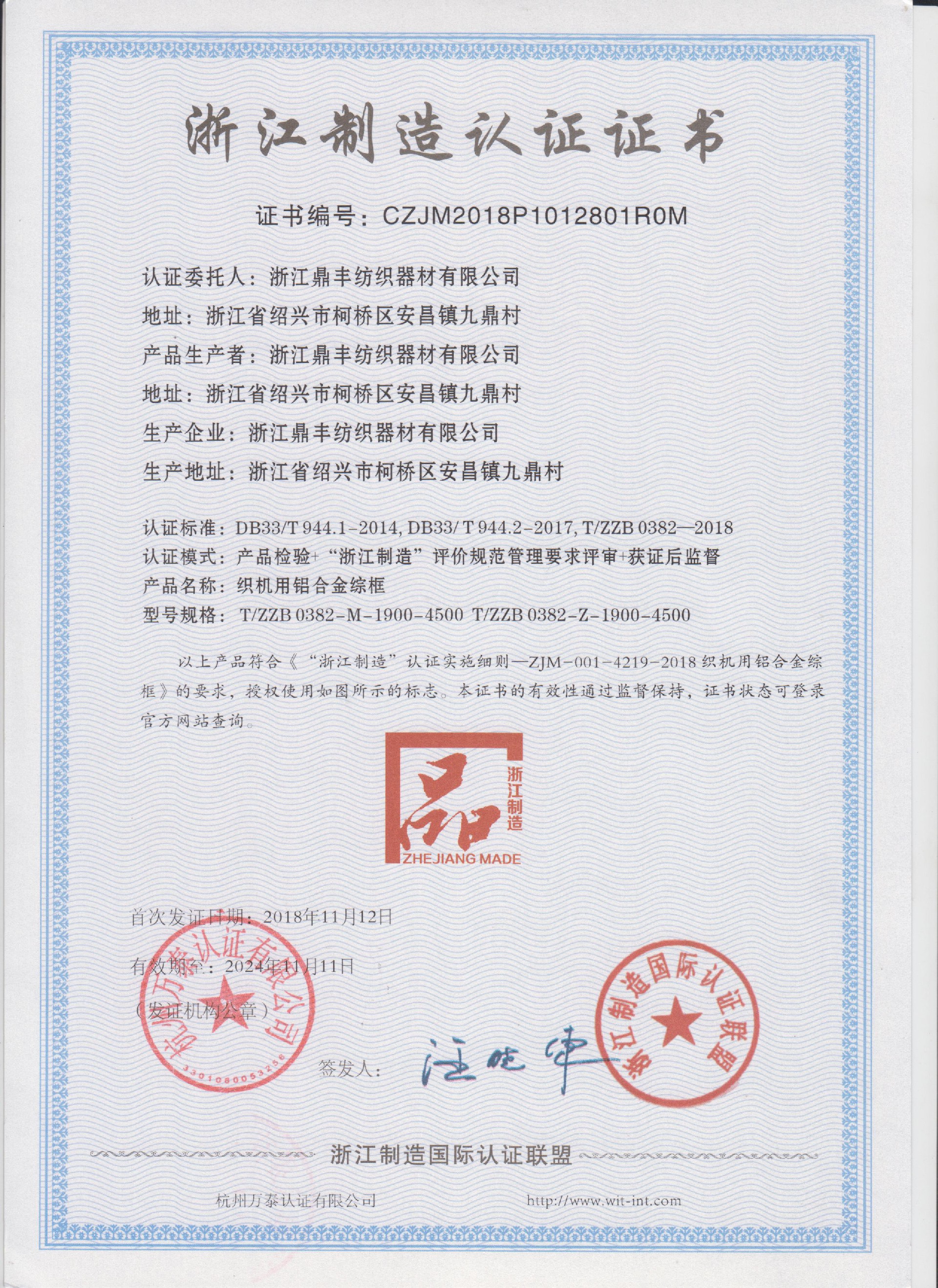 浙江鼎豐紡織器材有限公司始建于1986年,是一家專業(yè)生產(chǎn)各類無梭織機(jī)用鋼筘:噴氣筘、噴水筘、劍桿筘、其他類型鋼筘;鋁合金綜框、鋼片綜、停經(jīng)片、經(jīng)軸、織軸、卷布輥等產(chǎn)品及配件的民營企業(yè)。